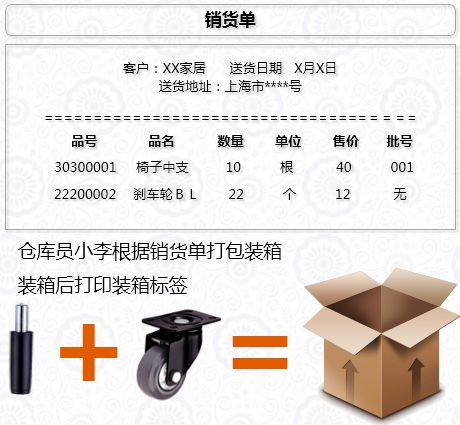 銷售部確認(rèn)對客戶的訂單出貨,出貨信息為:倉管根據(jù)銷貨指令完成揀料并逐筆核對信息: