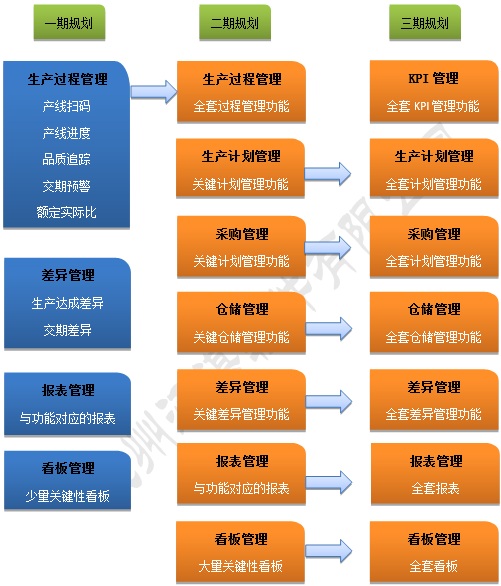 總體規(guī)劃、定制開發(fā)、分步實施、盡快見效