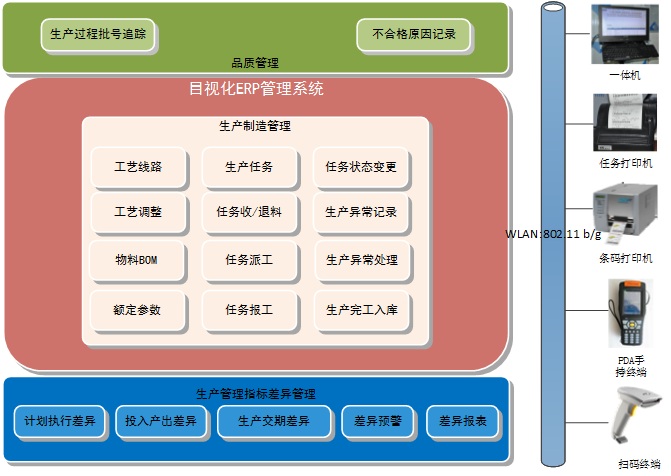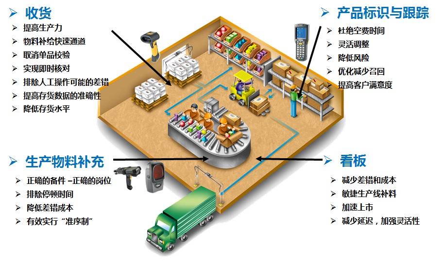 3) 數(shù)據(jù)采集:生產(chǎn)和倉庫現(xiàn)場的數(shù)據(jù)采集大多數(shù)可由手工錄入變?yōu)閽呙,實現(xiàn)快速準確采集數(shù)據(jù),并能實時傳遞和展示數(shù)據(jù);