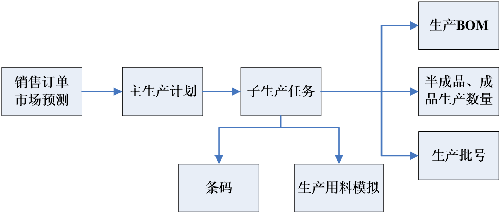 生產(chǎn)計劃中包含產(chǎn)成品的名稱、生產(chǎn)數(shù)量、開工日期、完工日期、產(chǎn)成品BOM領(lǐng)料單、生產(chǎn)批號,通過該生產(chǎn)計劃可以生成并打印產(chǎn)成品條碼編號;所以詳細(xì)信息記錄,全部自動傳遞至質(zhì)量追溯系統(tǒng);