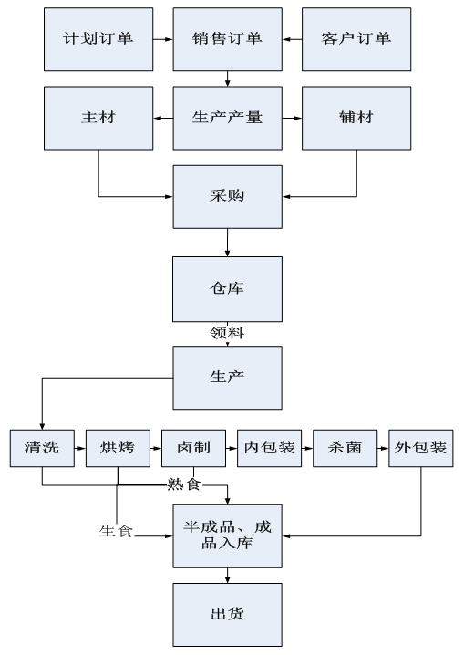 XXX公司主要經(jīng)營包裝食品,本次軟件需求重點在于生產(chǎn)各環(huán)節(jié)的損耗管控。上下道環(huán)節(jié)數(shù)據(jù)交接傳遞準確,訂單進度管控,車間任務進度透明化,半成品、成品庫存數(shù)量清晰掌控。
