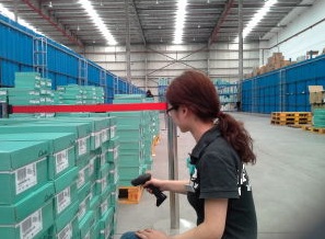 貨品入/出庫的,在其外包裝上粘貼一張柔性電子標(biāo)簽,并寫入物品信息,物品入庫時通過閱讀器讀取后,通過局域網(wǎng)講這些信息顯示在屏幕上,讓操作人員根據(jù)其信息進(jìn)行存放。