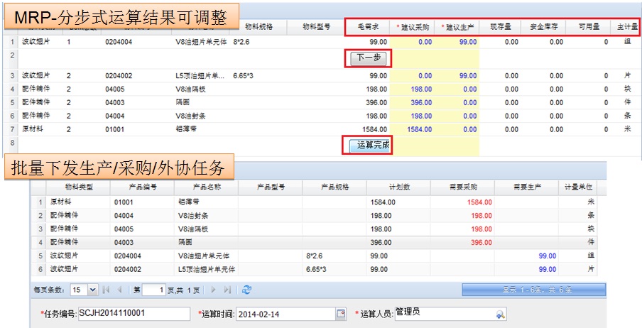 3、通過(guò)設(shè)定BOM數(shù)據(jù)、MRP參數(shù),展開MRP運(yùn)算,自動(dòng)產(chǎn)生合理生產(chǎn)、委外、采購(gòu)計(jì)劃;查看MRP運(yùn)算過(guò)程,結(jié)合實(shí)際情況調(diào)整計(jì)劃。;