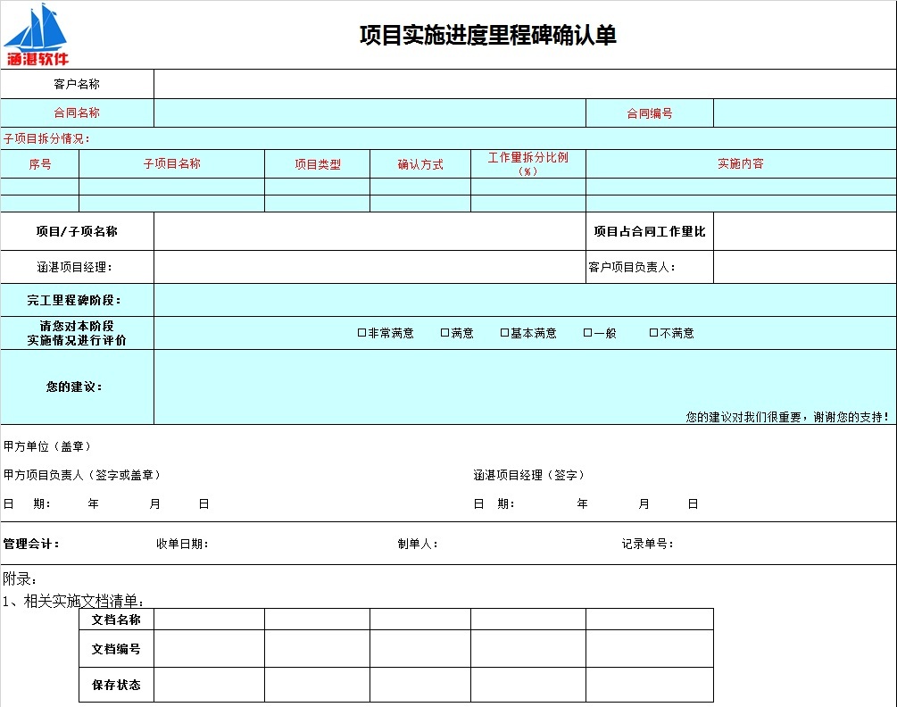 1、本里程碑確認(rèn)單是用于乙方確認(rèn)項(xiàng)目完工進(jìn)度百分比,確認(rèn)收入使用。